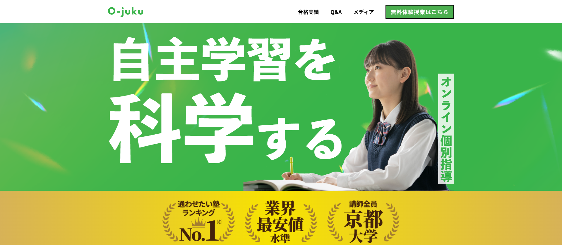 しかも1コマ(50分)2,680円からと料金も魅力!教材費・入塾費・退塾費がかからないのも魅力的です。京大という自由な校風の中にいる講師から低料金で確かな学習サポートが受けられるのが、O-jukuの強みです。